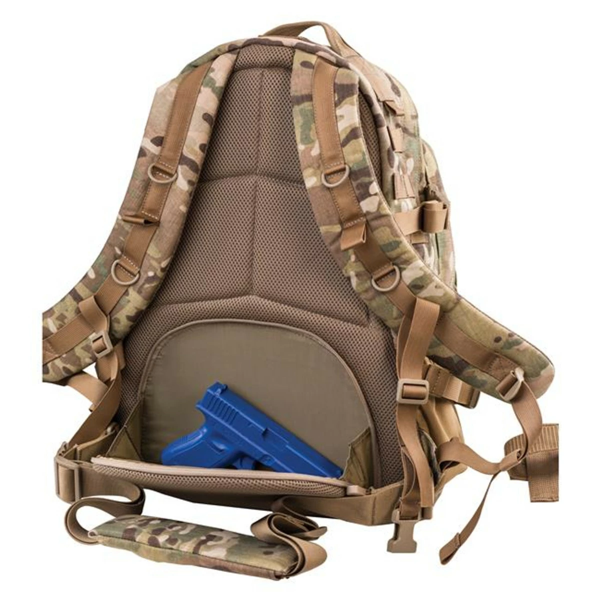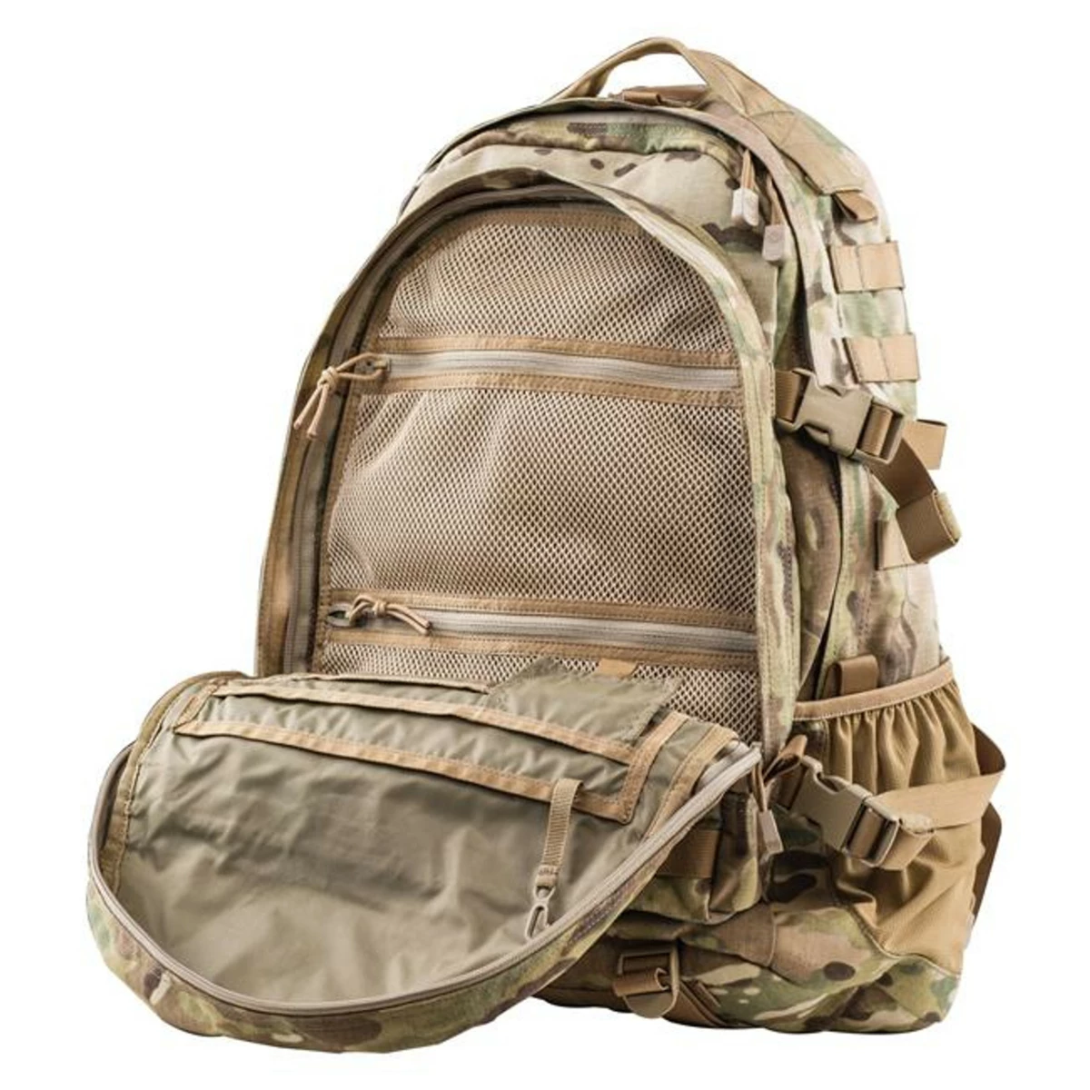 Tento batoh je dostatečně velký na nošení osobních věcí, munice a veškerého taktického vybavení. Má desítky přihrádek pro uskladnění všeho, co budete potřebovat na třídenní výpravu. Boky lze snadno stáhnout s pomocí kompresních popruhů, které zároveň umožňují upevnění delších předmětů jako jsou pušky, karimatky nebo stativy. Vnější povrch je pokryt univerzálními popruhy pro přidání dalších kapes, takže si můžete batoh přizpůsobit podle svých potřeb.