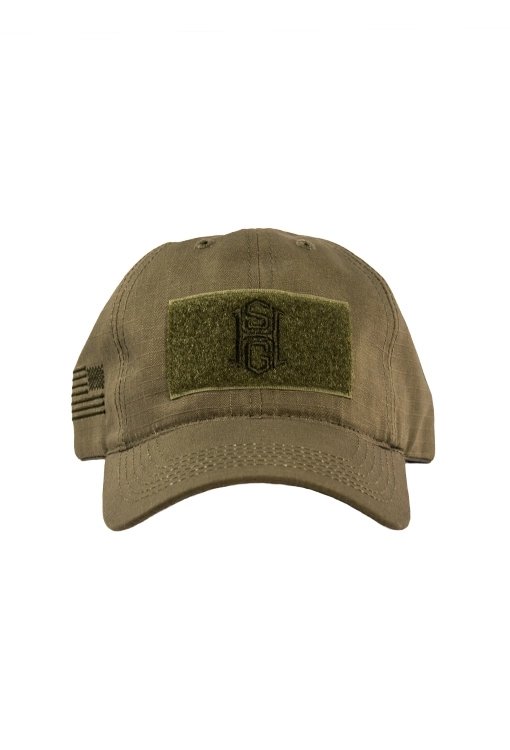Čepice je osazena Velcro panelem s logem HSGI a potiskem US vlajky na pravé straně.
