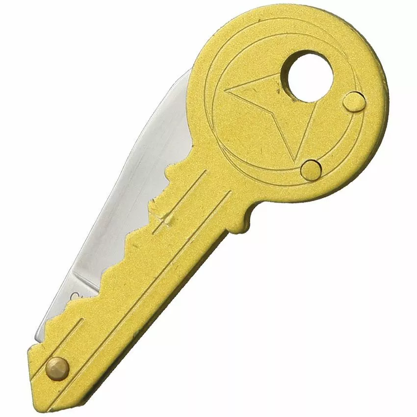 Zlatá rukojeť z nerezové oceli ve tvaru klíče. Očko pro připevnění na klíčenku nebo šňůrku.