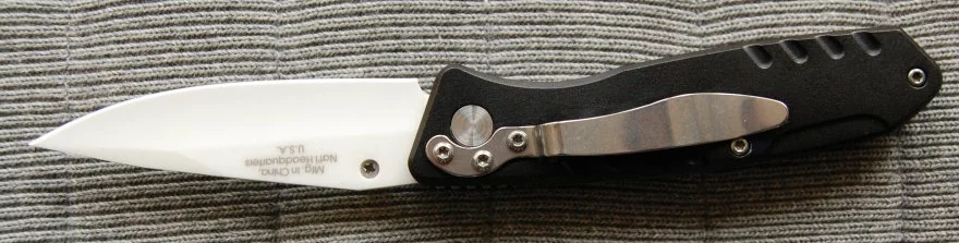 Keramický zavírací nůž, 4'' uzamčená vložka, černá hliníková rukojeť.
