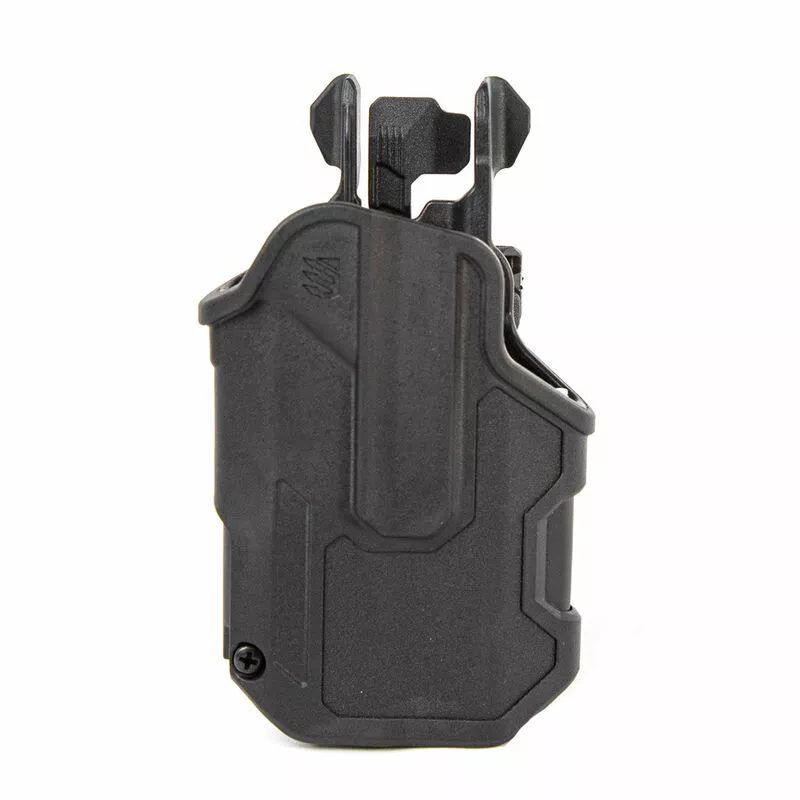 Kompaktní opaskové pouzdro BLACKHAWK! T-Series L2D vyrobené z odolného polymeru, nabízí pohodlné řešení pro nošení zbraně se svítilnou O bezpečnost pouzdra se stará regulovatelná pojistka svoru přední části, dále lučíková pojistka ovládaná palcem na vnitřní straně. Od verze L2C se toto pouzdro liší překrytím závěru a zadních mířidel. O vnitřní pohodlí se stará speciálně upravený povrch, zabraňující oděru zbraně a zárověň tlumí zvuk tasení.