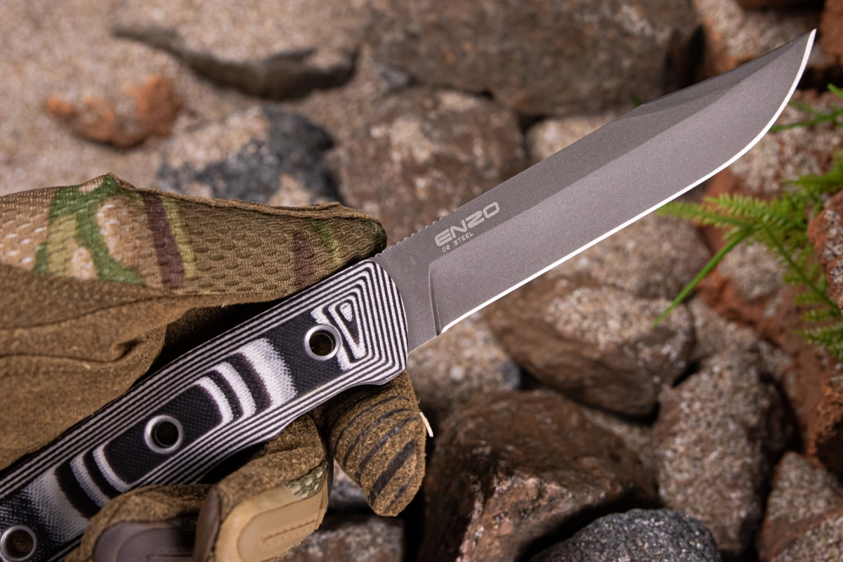 Kizlyar Supreme Enzo je nůž s pevnou čepelí, spolehlivý a šikovný pracant z jednoho kusu ocele. Nůž vyniká při většině činností jako řezání nebo sekání a má ostrou špičku s výbornou penetrací.