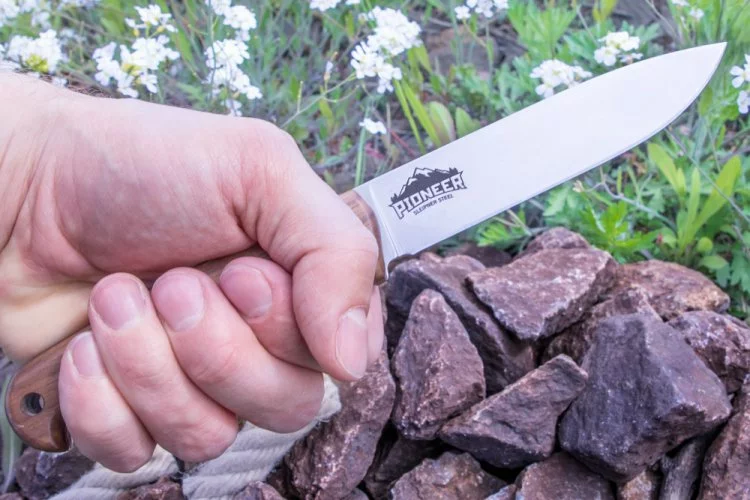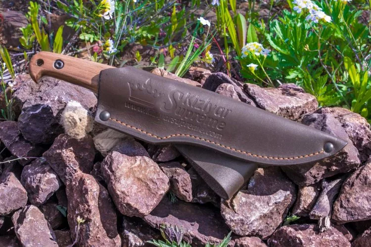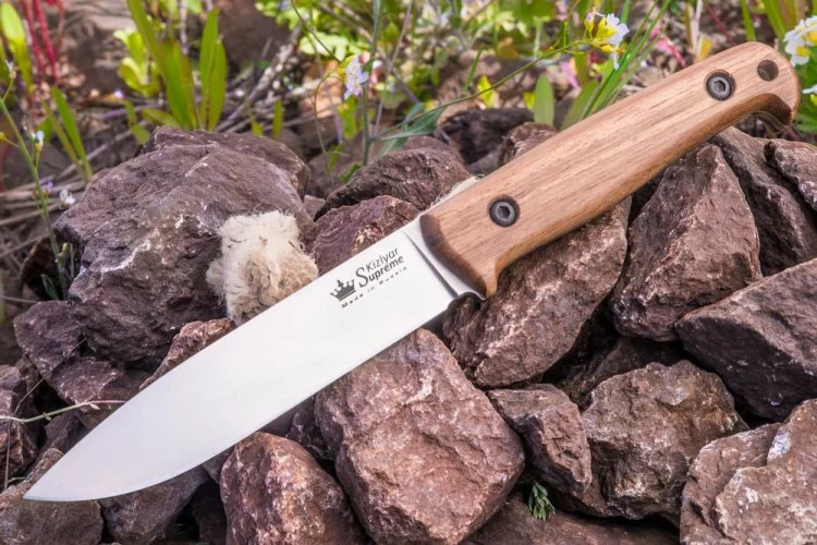 KIZLYAR SUPREME Pioneer AUS 8 je nůž s pevnou čepelí. Pevná a jednoduchá konstrukce, ergonomická rukojeť. Parametry: Celková délka: 23,2 cm Délka čepele: 12,5 cm Tloušťka čepele: 3,75 mm Materiál čepele: ocel AUS 8 Zpracování čepele: vysoce odolné titanové pokrytí Materiál rukojeti: Kavkazský ořech Tvrdost: 58-60 HRC Obsah balení: nůž, pouzdro z pravé kůže, dárková krabička