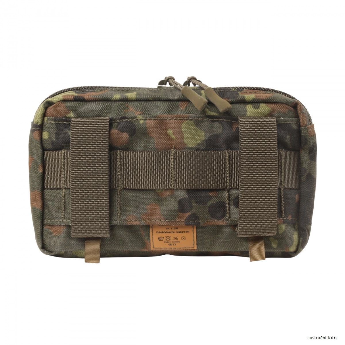 Horizontální univerzální sumka od Lindnerhof Taktik pro uložení malých nástrojů a dílů. Pouzdro je vybavené vnější vrstvou MOLLE a připevňuje se pomocí systému PALS, což jsou dva ohebné 22mm popruhy, které se snadno proplétají vazbou.