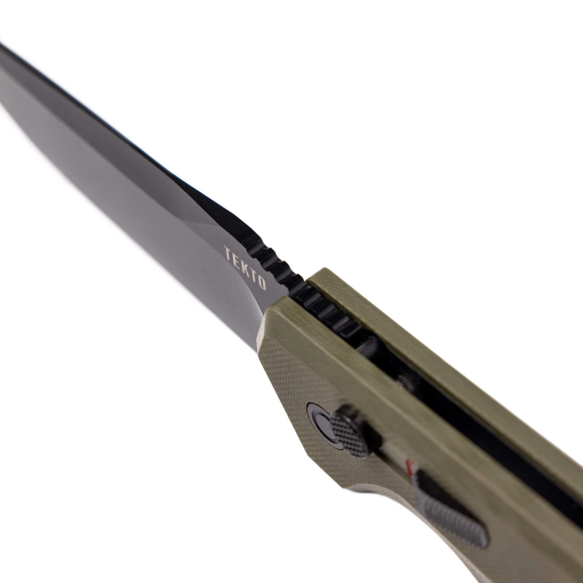 Už na první pohled zaujme karmínově červený indikátor, umístěný vzadu, který signalizuje připravenost nože k akci. Jen posun vpřed a zámek je aktivován, což zapříčiní jeho uzavření a účinně odrazí od jakýchkoli neoprávněných pokusů o jeho otevření.